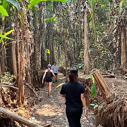 Location: Nam Phrae, Hang Dong, Chiang Mai Distance: 8 kms Duration: 3 hours Level: Medium Environment: Mountain, crop fields, hiking trail, fruits trees Starting from Wat Nin Prapha temple, you start climbing the mountain overlooking the village. The path is small and take you from the local houses to the deep nature. You will follow the path that monks used to walk to reach the temple from the other side of the mountain. The landscapes are very beautiful and authentic. Very few people take this route today. At the end of the mountain path, you will reach impressive crops. TREK DESIGN: The first part of the trek is just outside the village from the temple. You will climb just a few kilometers under the trees. Once you have reached the top, you will go down to the other side, where you will enter crop fields area. You will pass between the trees, skirt the bed of a small river and arrive in the heart of the valley. Here you will have plenty of wild and fruit trees. Lemon and papaya trees can be seen, for example. The last part after the crops is a much wider, signposted path. It gradually joins the road south of the Samoeng loop. You are likely to meet locals who cultivate their land there. What is included in this jungle trail? - 1 local guide to tell you the most authentic stories - Fresh fruits and water - Transfer for your return to the homestay Additional option: Chiang Mai transfer.
